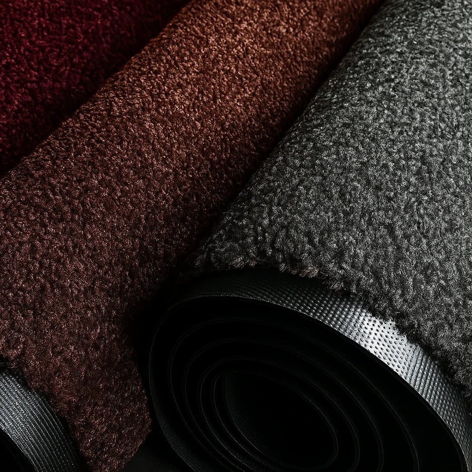 Premium polyamide cut-pile carpet matting with non-tearable double-reinforced borders. Machine-washable and anti-slip.